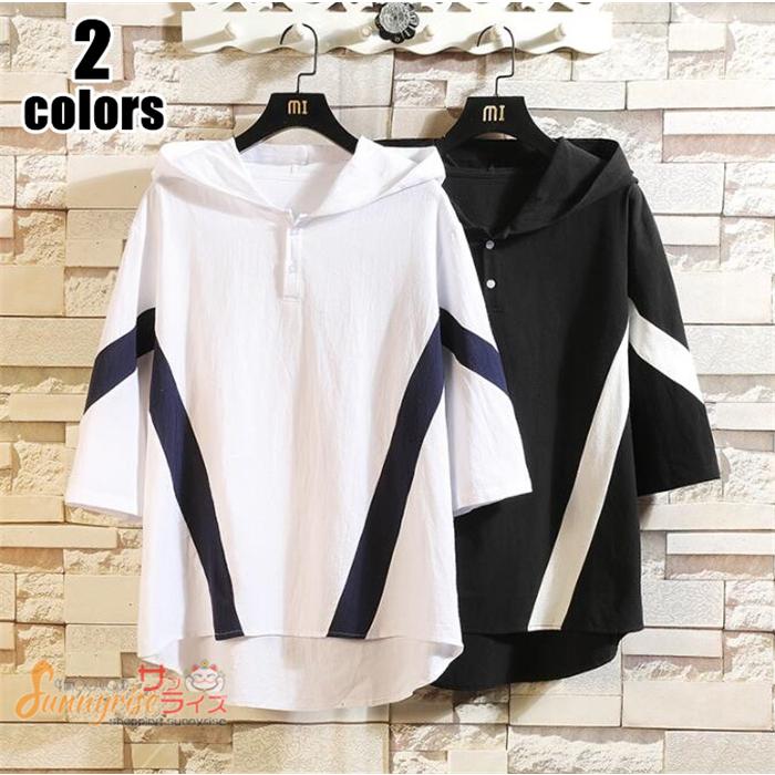 メンズ パーカー 7分袖パーカー 配色切り替え 夏パーカー ゆったり 黒 白 トップス 七分袖 プルオーバー トレーナー トップス Qwe1413 サンライズ 通販 Yahoo ショッピング